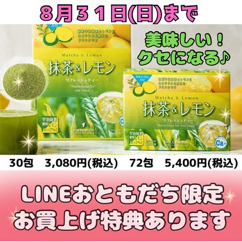 こんにちはブーケですヾ(*´∀`*)/冷たくしても美味しい抹茶&レモンのご紹介ですLINEおともだち限定の特典がありますので全部読んでいただけたら嬉しいです☆かんたんで飲みやすく