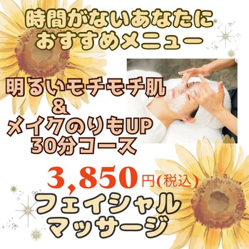 こんにちはブーケです♪今日は時短メニュー3種のご紹介です(1)フェイシャルマッサージで血行促進夏は冷房で血流も悪くなってお肌に老廃物も溜まりがち…肌細胞に必要な酸素や栄養