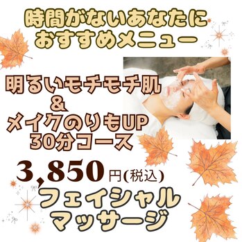 こんにちはブーケです♪時短メニュー3種(各)3,850円(税込)のご紹介です(*´ω`*)この3種に美容液の導入などなど気になるオプションを追加される方も多いんですよ///(1)フェイシャ