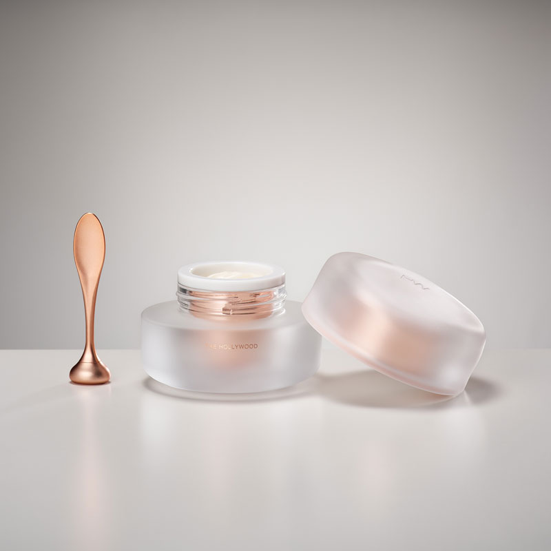 洗顔後の清潔な肌、またはハリウッド スキンコンセントレートやほかのスキンケア製品ご使用の最後に適量(目安としてパール1~2粒位)を添付のスパチュラで取り、乾燥する部分から全体にのばします。